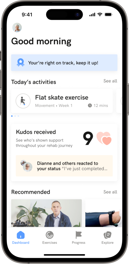 Level up your rehabilitation routine with the MAXM Skate App. Access exercises, live feedback, and clinical insights. Track recovery and share results with your health team.